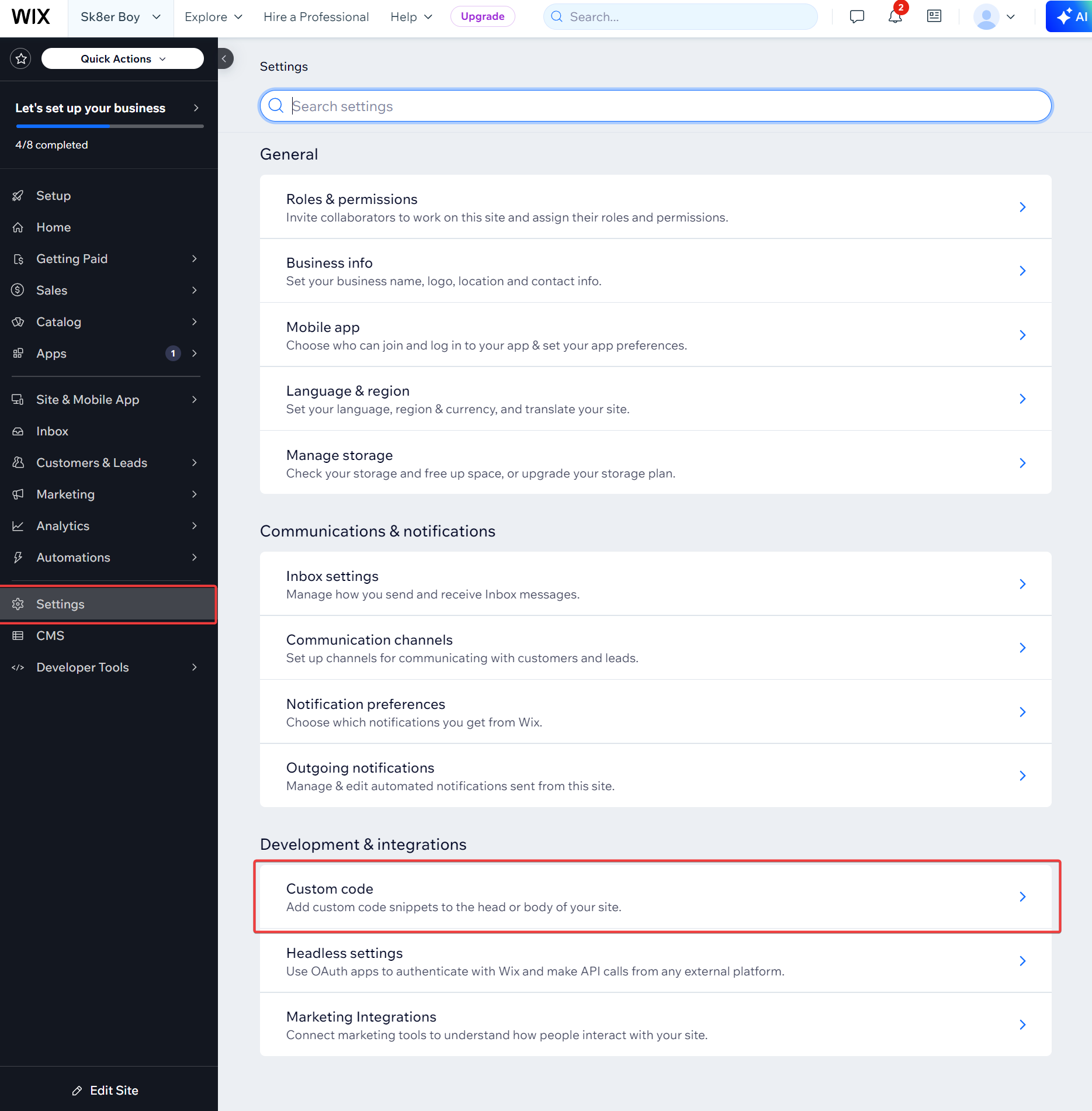 - באותו מסך Custom Code, לחצו שוב על Add Custom Code.