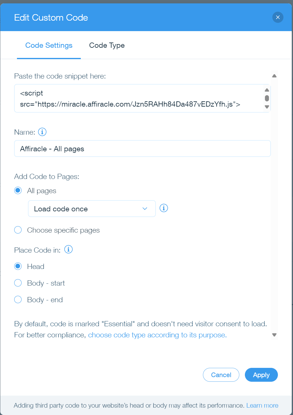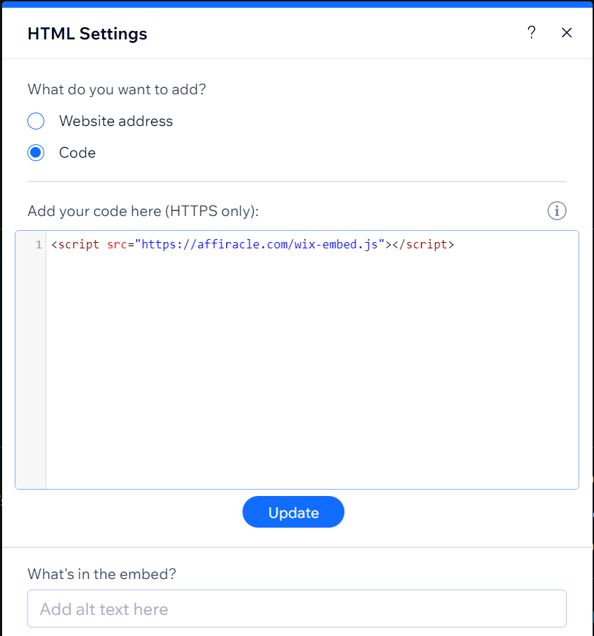 <script src="https://affiracle.com/wix-embed.js"></script>
